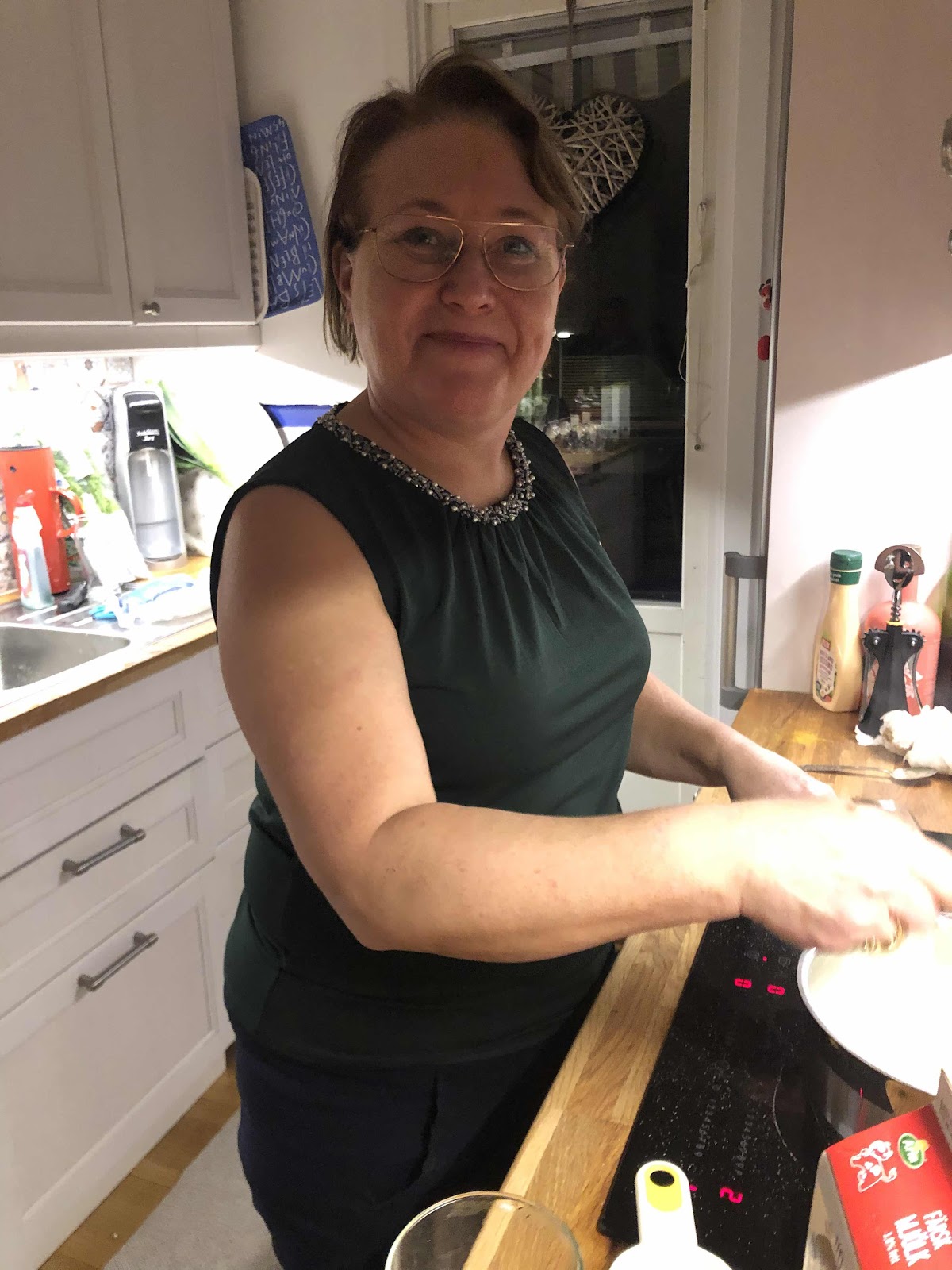 Framåt kvällen var det dags för förrätt, varmrätt och efterrätt. Alla hjälpte till i köket. Det bjöds på löjrom och sedan en oxfilé Wellington med hasselbackspotatis och en rödvinssås. Till efterrätt blev det en citron och limefromage med färska hallon.