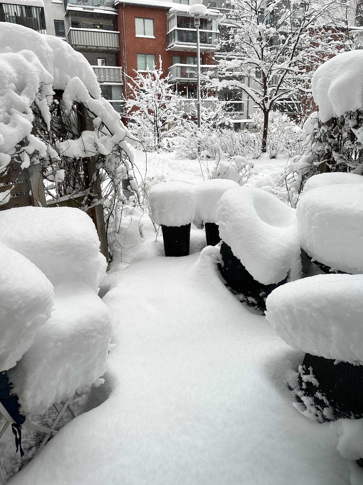 Men det senaste dygnet har det verkligen snöat utav bara den. I går kl 17.00 var det snöfritt och i morse när vi vaknade såg det ut så här.