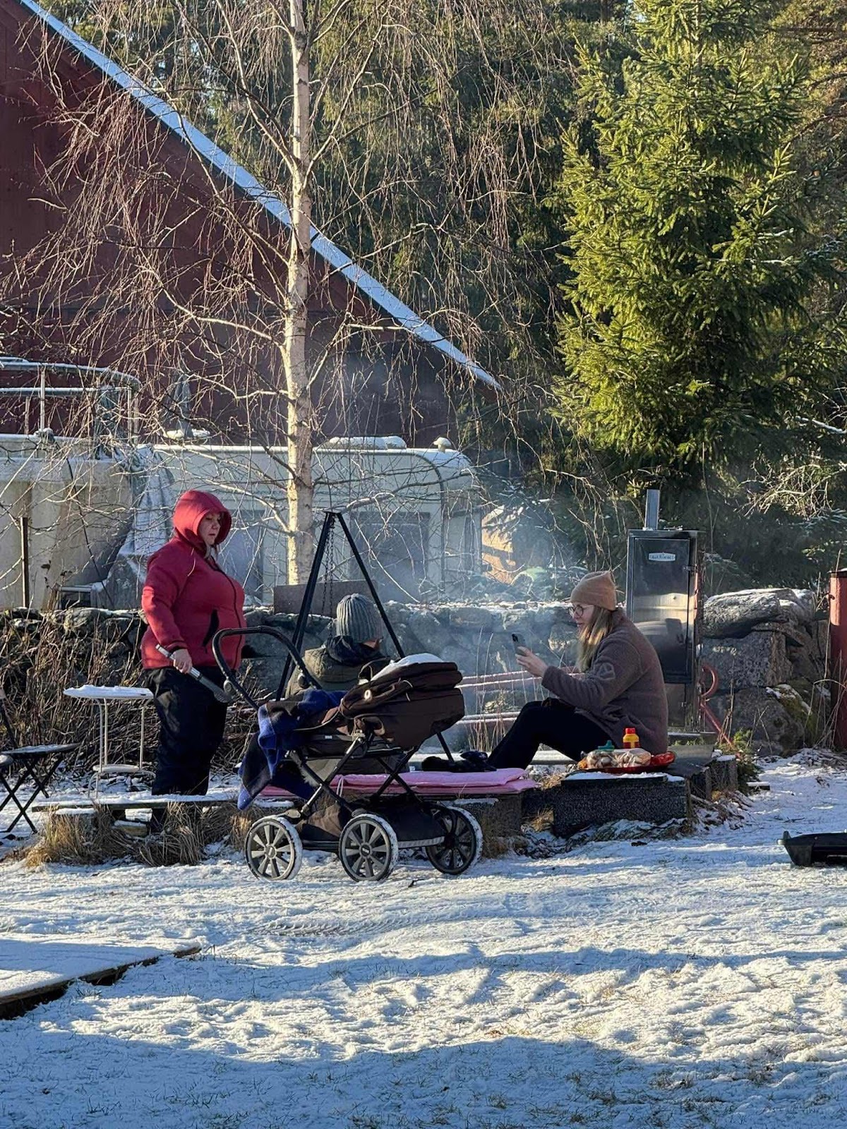 Vi har ätit gott, grillat korv, rökt fisk och räkor, tittat på grannens höns, badat och lekt. Jag och Jonny har kollat på Pippi Långstrump och lärt oss hur polisbilar, brandbilar och andra fordon låter.
