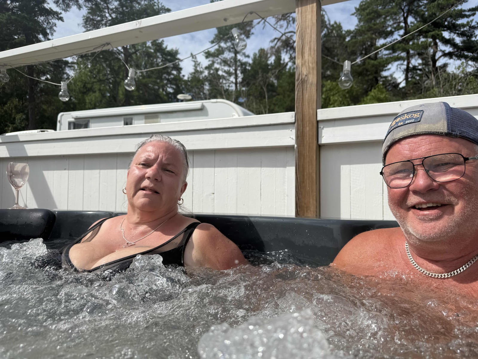 Kjellis och Sussie kom från Alnön och hälsade på. Vi fick både sol och en helvetes massa regn. Vi grillade, rökte lax, spelade kort och bakade pizza.