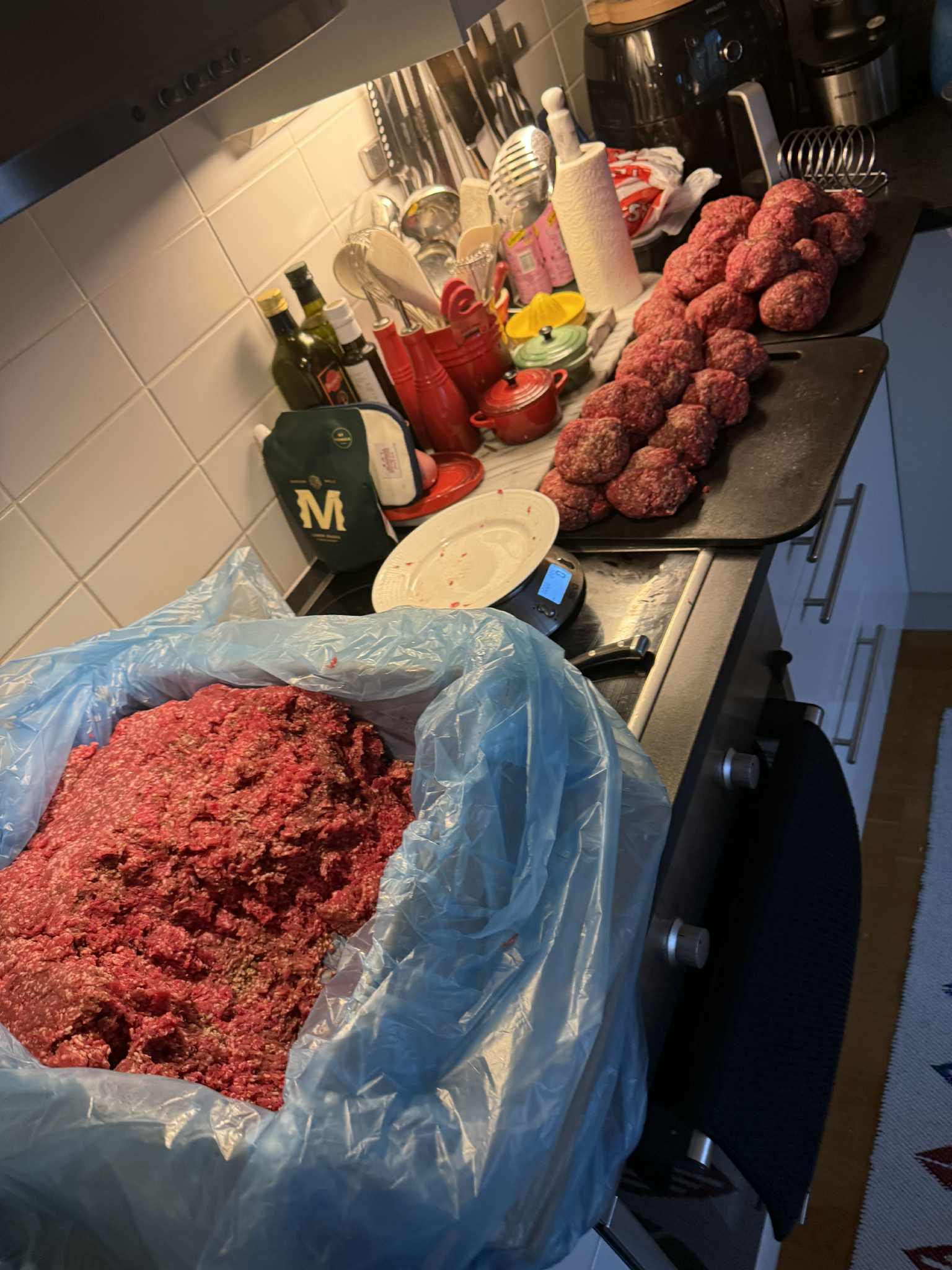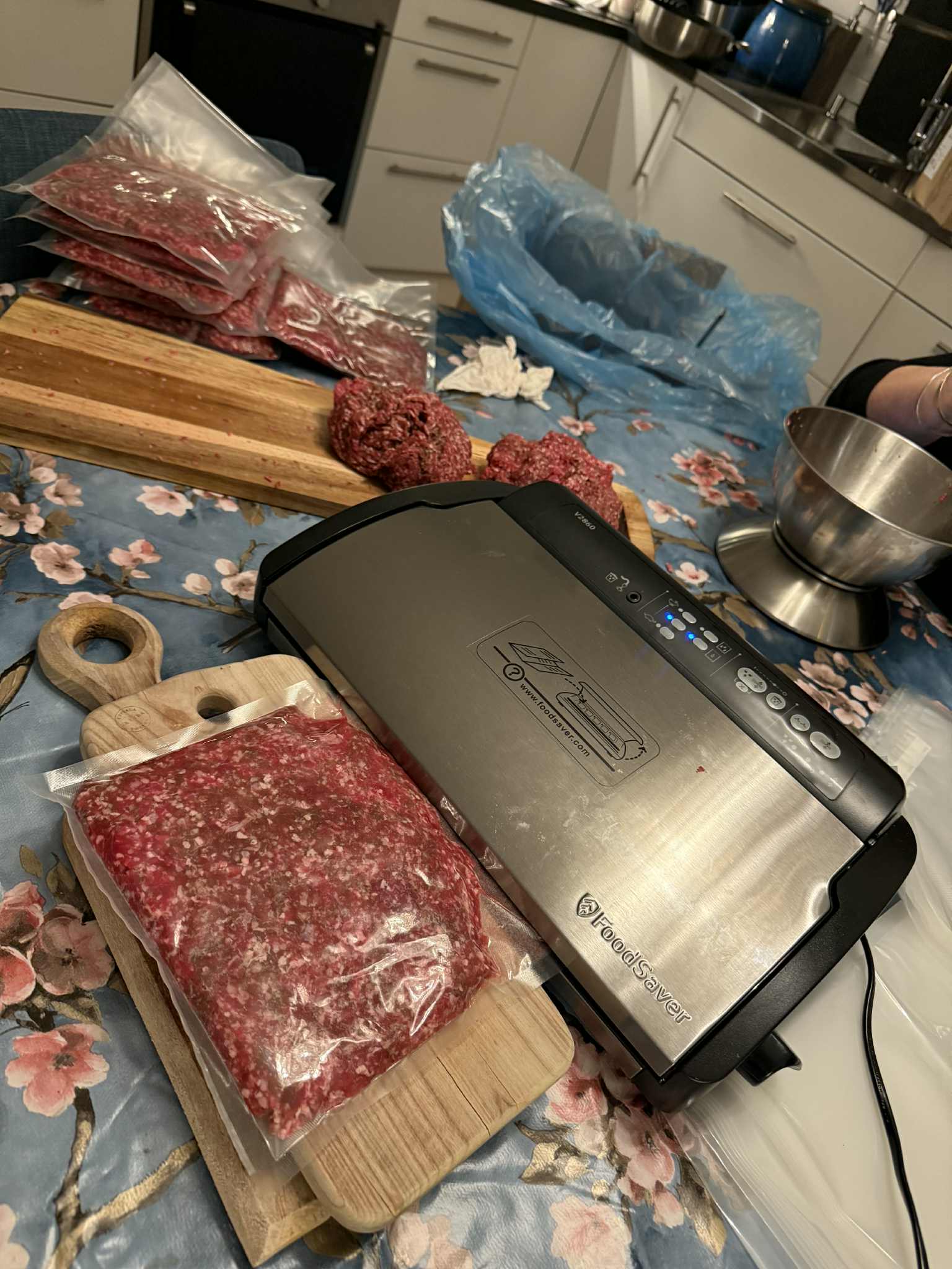 På torsdag kväll när jag kom hem hade Anita hämtat Eivor på tåget och Jonny hade åkt till Eriksbergs gård under dagen och hämtat 60 kg kött som vi skulle ta ta hand om. Bla paketera 30 kg köttfärs.